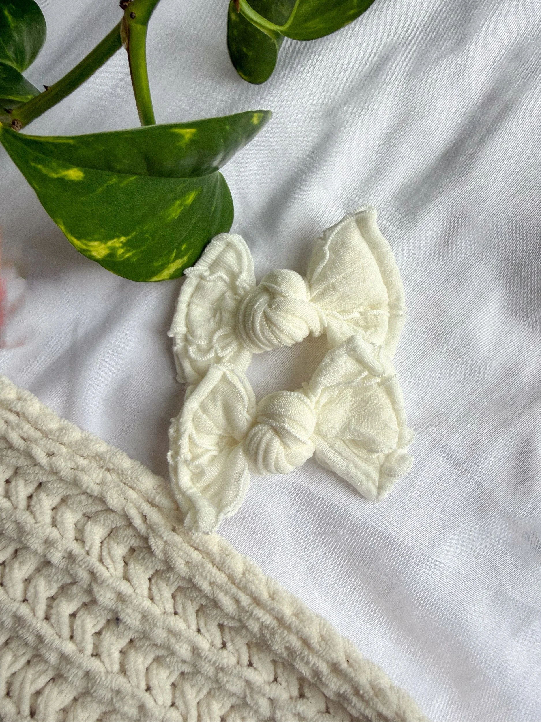 WHITE RUFFLE KNOT PIGGIES