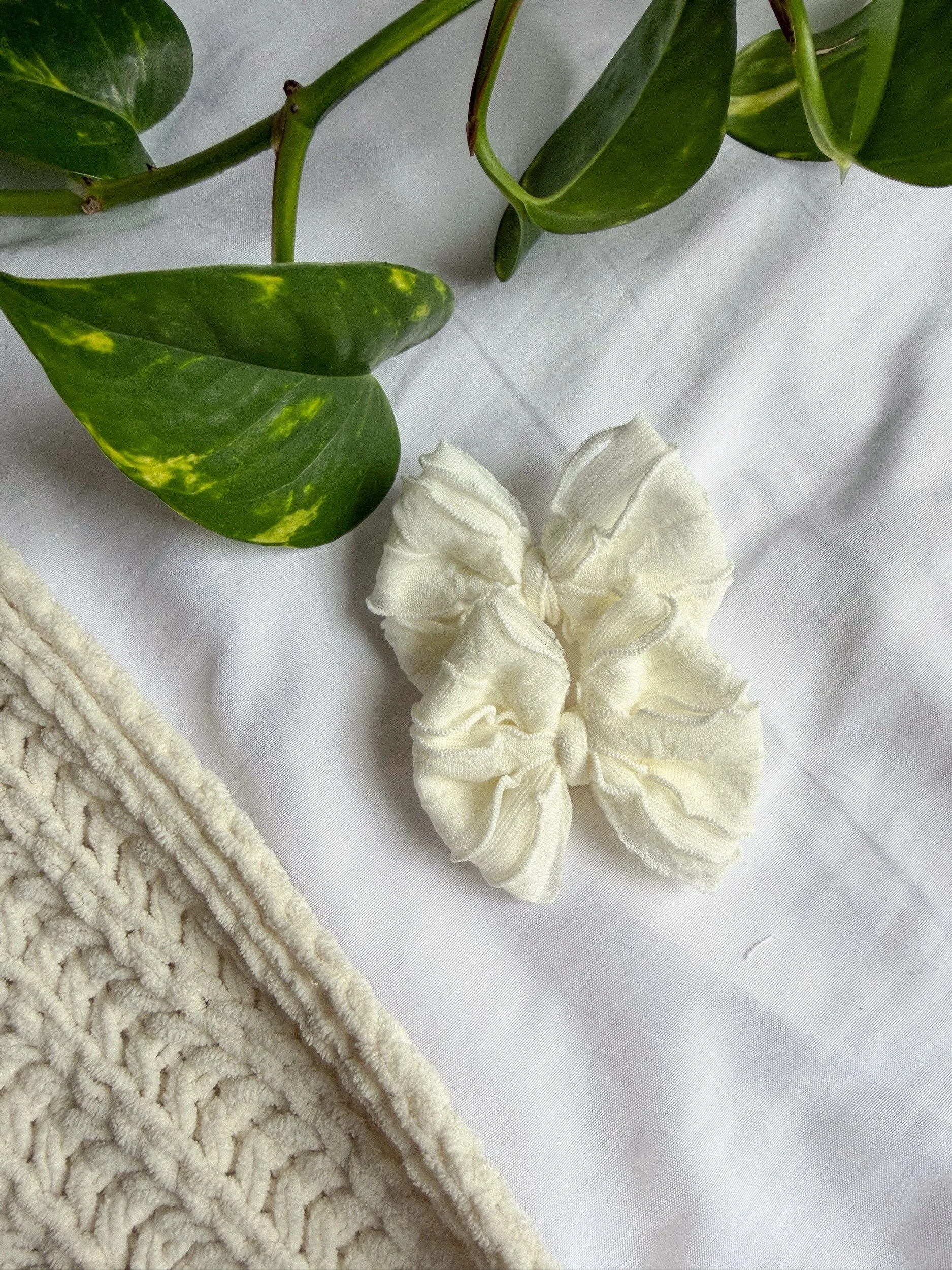 WHITE RUFFLE NYLON KNOT