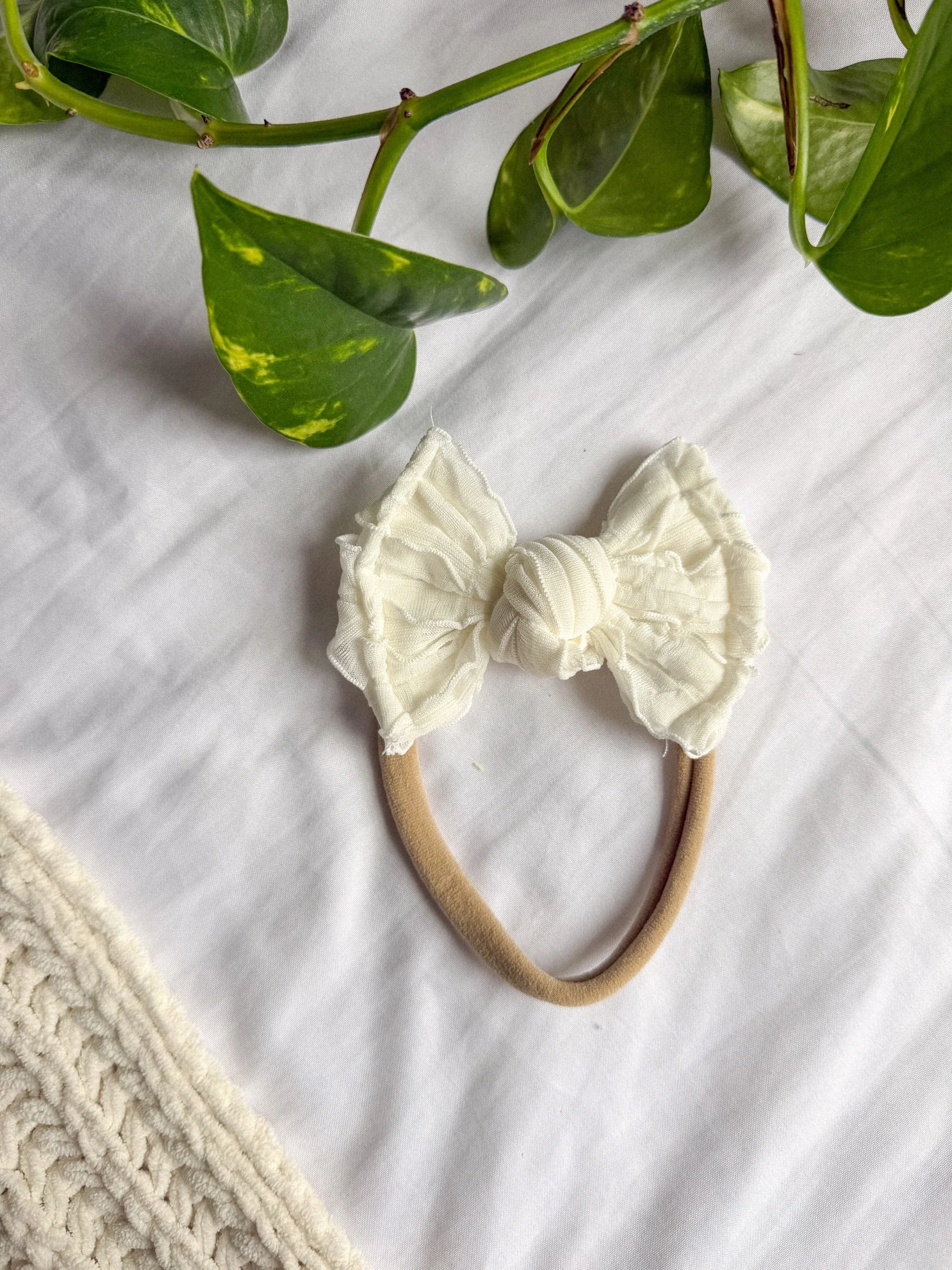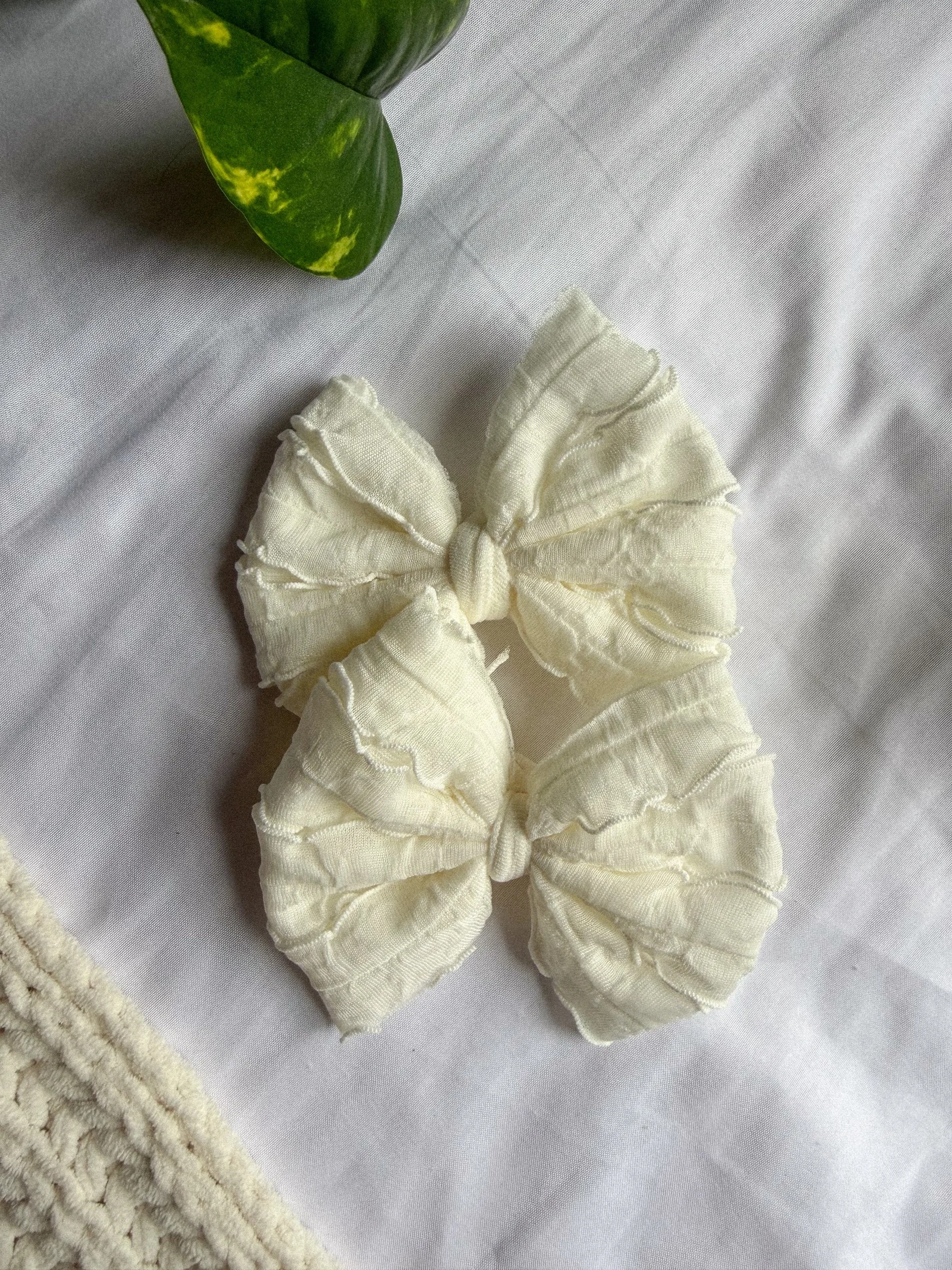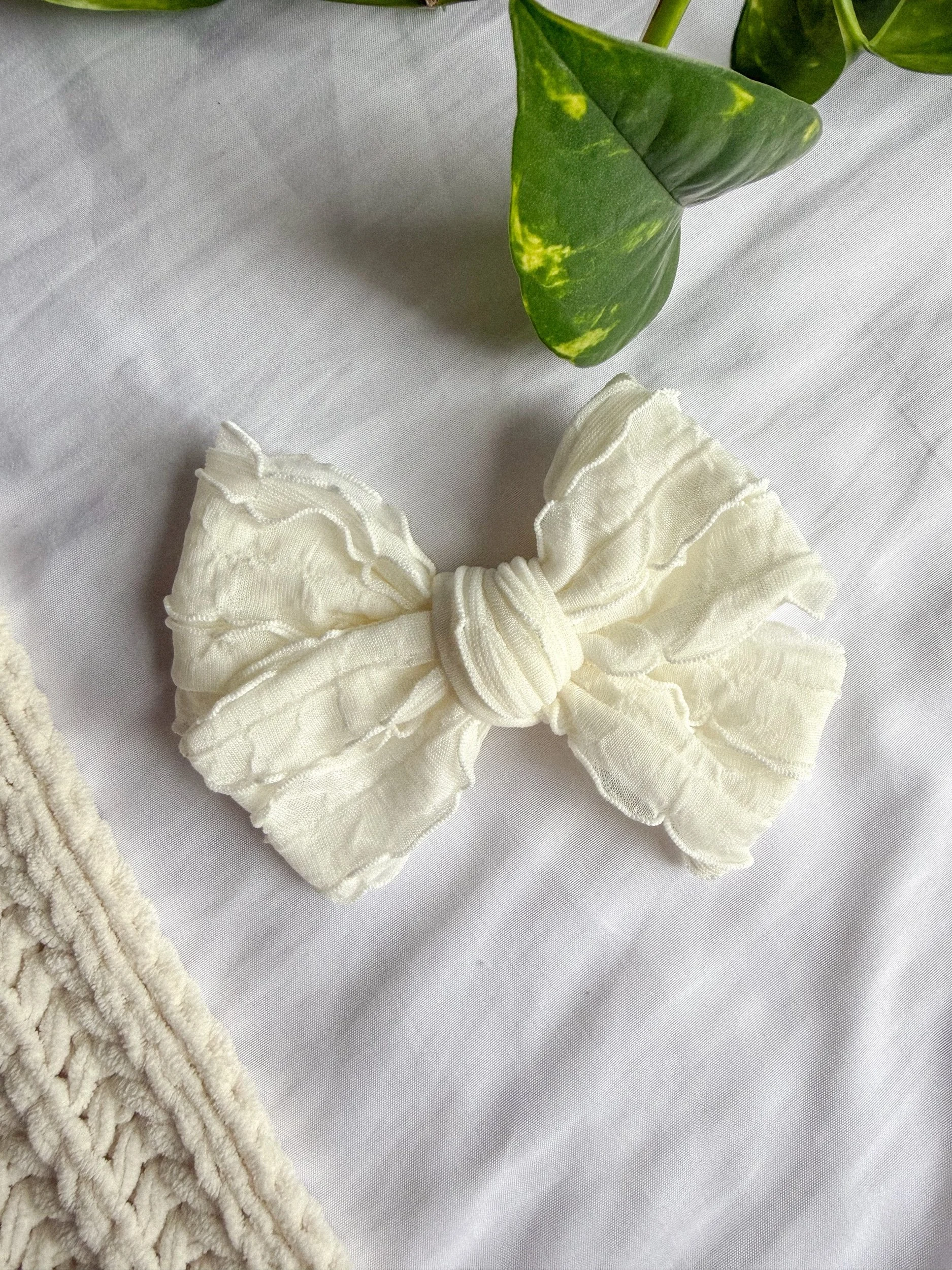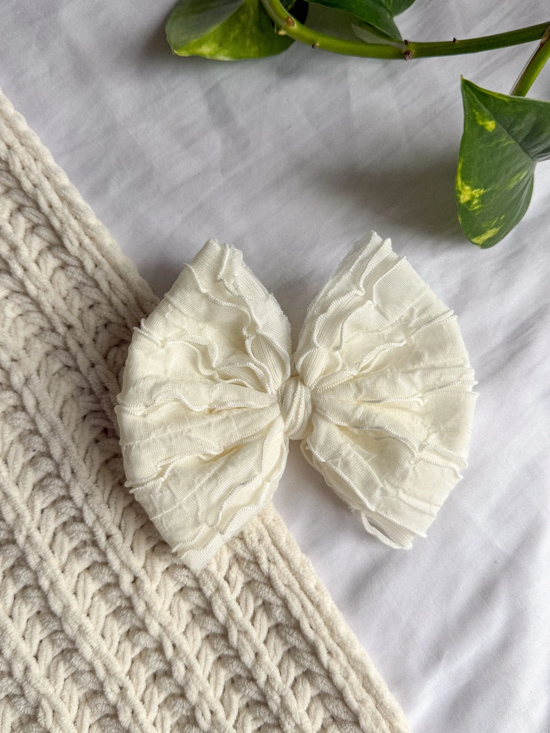 WHITE RUFFLE TIED BIG BOW